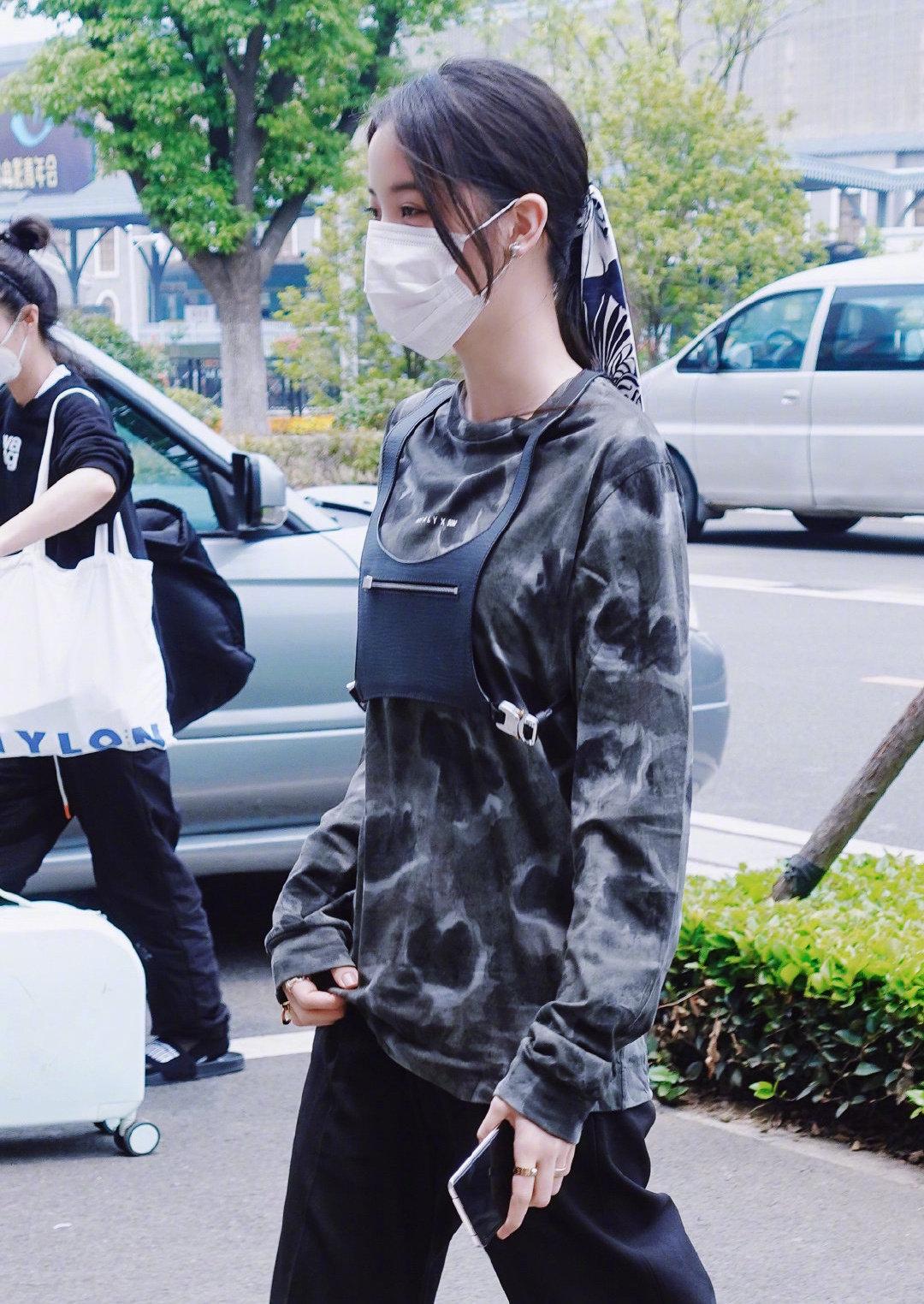 Although the combination just now is casual and fashionable, in terms of handsomeness, it is definitely not as good as Ouyang Nana‘s appearance. A dark gray tie-dyed thin sweatshirt with a unique pattern and texture brings a sense of luxury. The deep color matching and simple shape bring a neutral coolness, and there is also a short work clothes. The vest is used as a match to make the cool look more obviousPaired with a pair of black wide-leg pants, the handsome and slimming color makes the cool effect of the look more obvious.