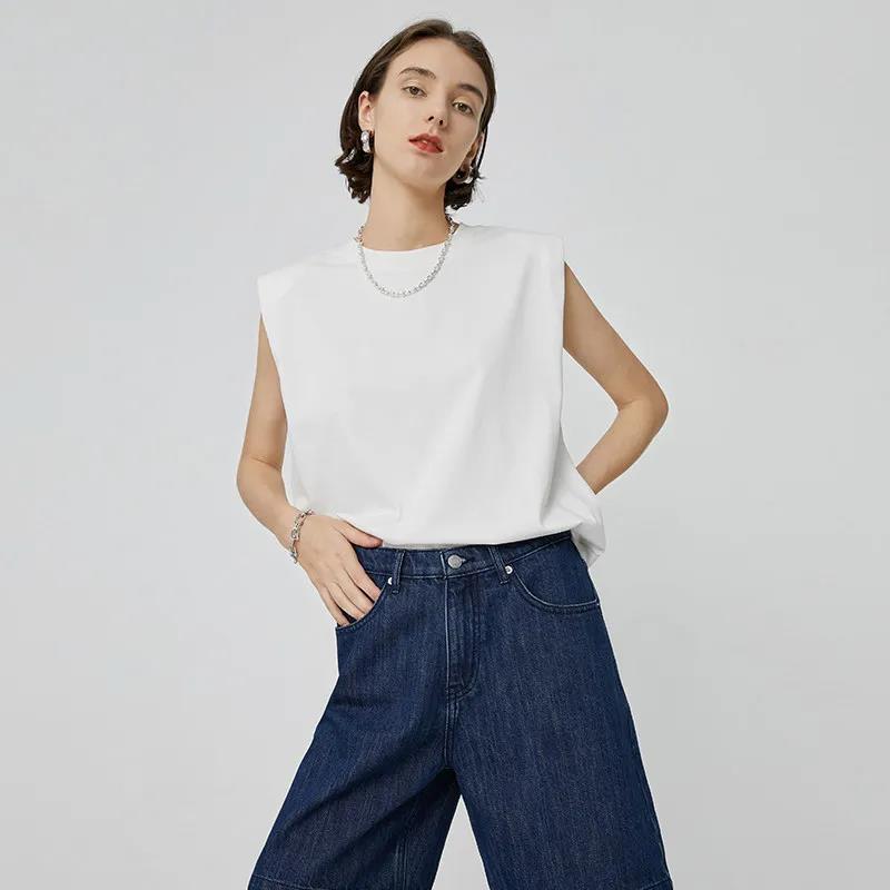 The biggest feature of the shoulder pad shirt is its shoulder version design, which has the refreshing aesthetic feeling of regular short sleeves. , and contains the cool and handsome style of a suit. The sleeveless shoulder-padded version gives people a very chic street cool charm, and the commuting atmosphere of this item is particularly outstanding. At the same time, it is also very tolerant. If you choose short shorts or a skirt, it can be perfectly integrated with it, giving you a high-end and domineering look.