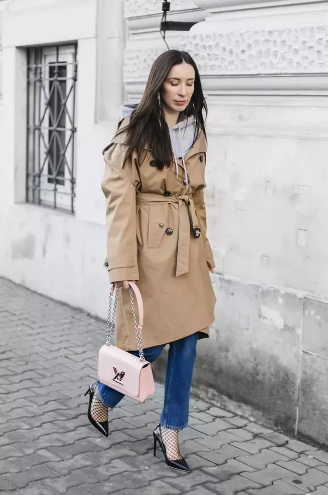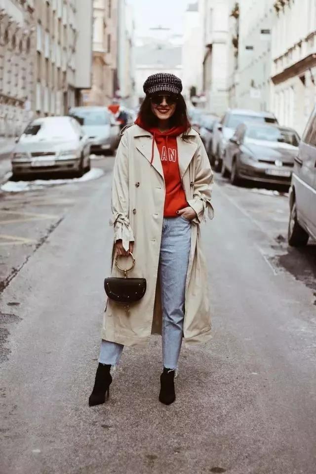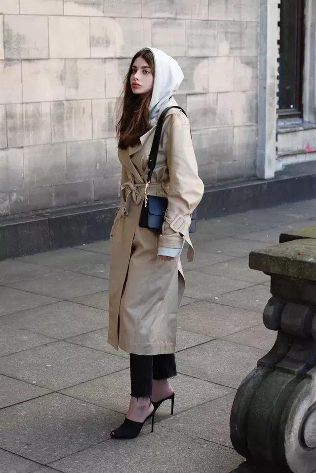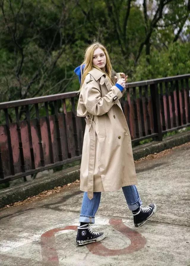 It is not difficult for tall girls to wear a long windbreaker. It looks elegant and simple, and it is also super revealing. Full of fashionable atmosphere. Wearing a sweatshirt inside adds a sense of age reduction, and the combination is also very suitable for autumn and winter weather. If you want to have a more ladylike style, then pair it with a pair of high heelsShoes can create a full temperament and tenderness.