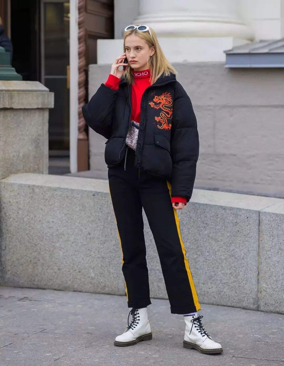 Most items with strong color collisions are more eye-catching when worn, even if the color is not particularly showy, and this This kind of fashion is also unmatched by other items. The combination of the classic black sweatshirt and the white down jacket is a perfect match. It looks fashionable and beautiful when worn, and it is also extremely fashionable. Wearing it with black boots can also give you a fashionable look.