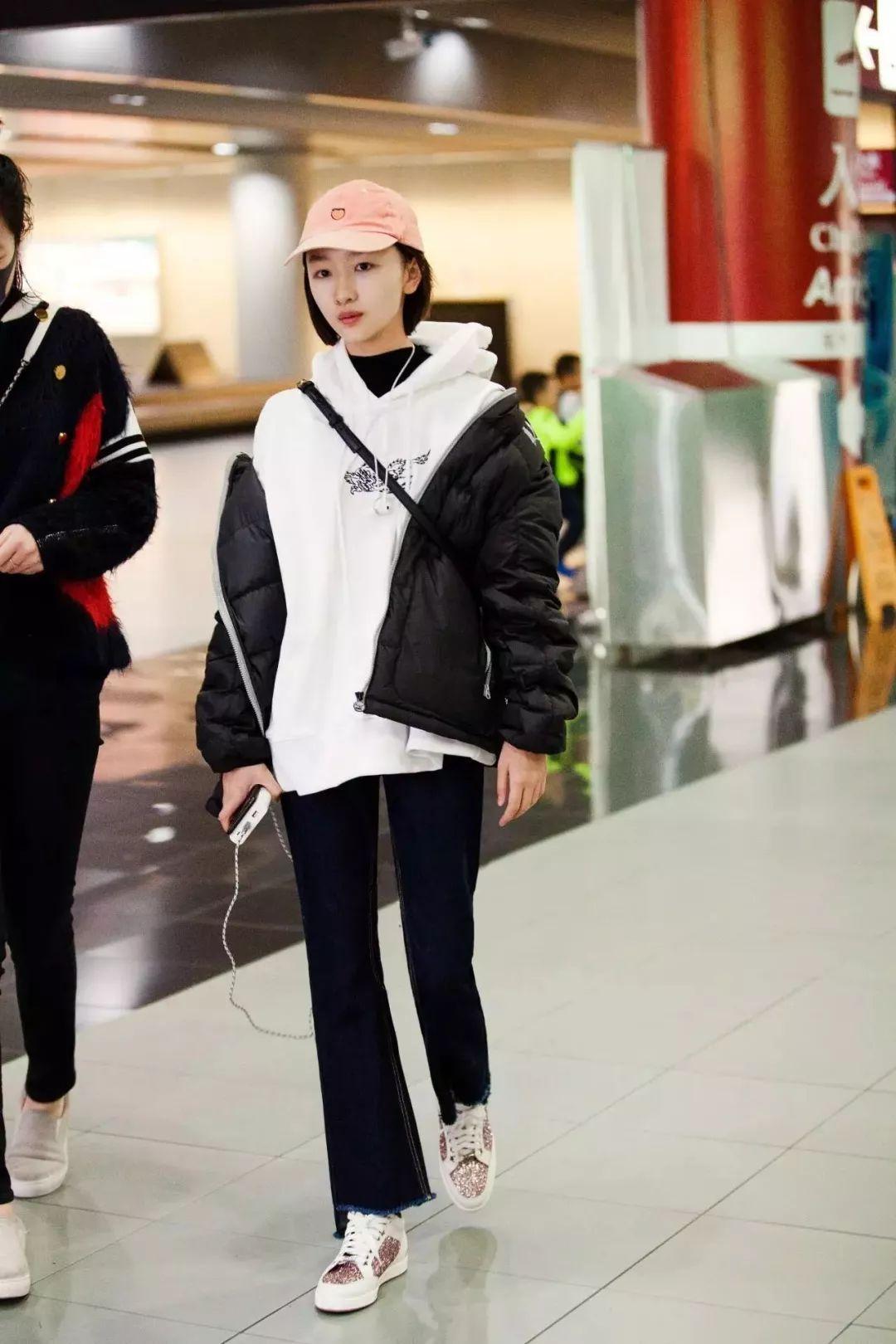 If solid color sweatshirts feel a bit monotonous, then choose ones with some fashionable print embellishments to create your own unique temperament. And when paired with a solid-color down jacket, it will also give a sense of layering. The lower body is paired with slim-fitting pants, revealing the curves of the slender legs. And outfit combinations like this are the favorite combinations of many little girls.