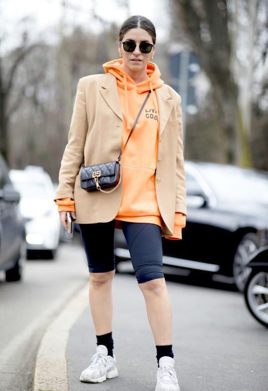 The suit jacket is a favorite item among working girls, and it looks very formal when worn. If it is decorated with a hooded sweatshirt, the whole outfit will look younger. Paired with trousers of the same color, it looks fashionable and simple, and when combined with comfortable and versatile sneakers, you can easily wear it with a full sense of trend. Pair it with a delicate small bag to complete the look. street.