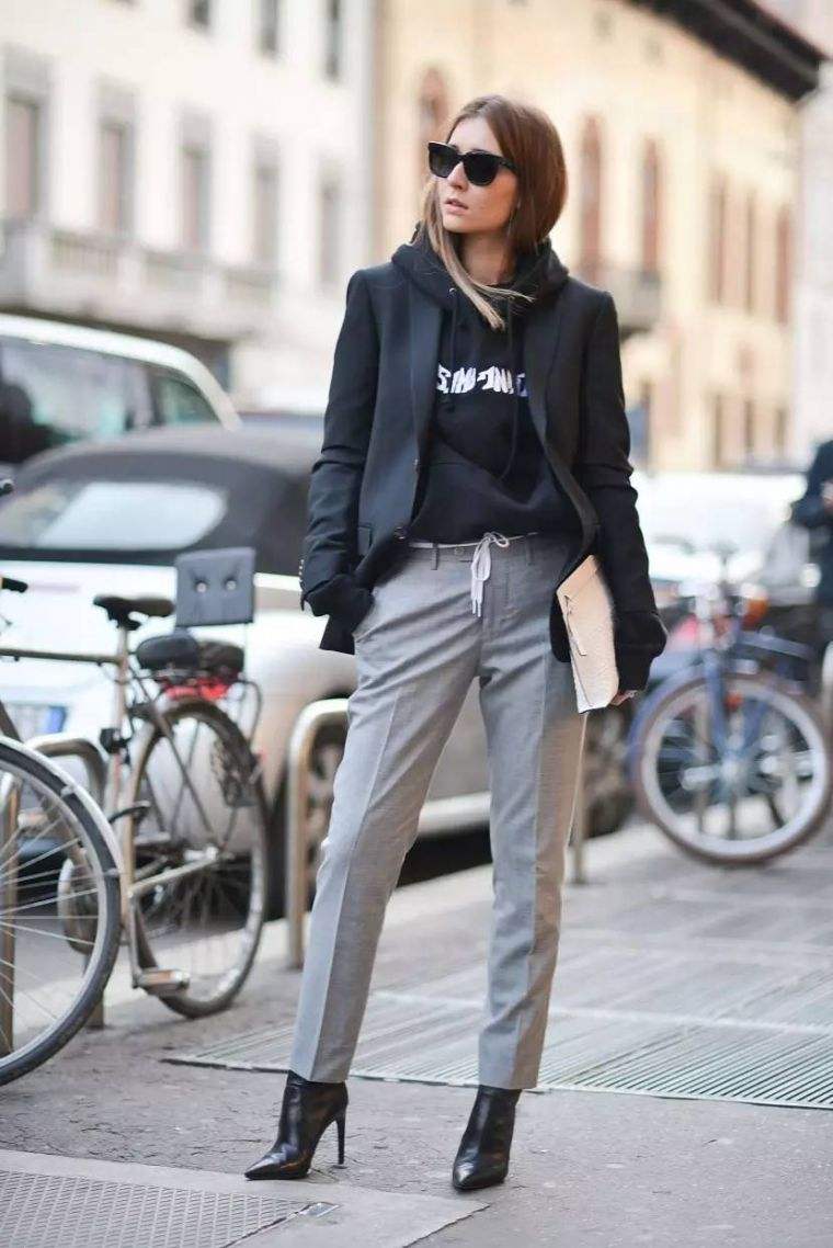 Some girls always think that hooded sweatshirts are not very suitable for the workplace. In fact, they are not. Wear them as inner wear, and there is no need to choose the color. Too showy. It can be paired with a classic suit jacket, and it doesn’t look out of place at all. Paired with a combination of trousers on the lower body, the whole look still looks very dignified and elegant, showing a full sense of confidence and a unique fashionable charm.