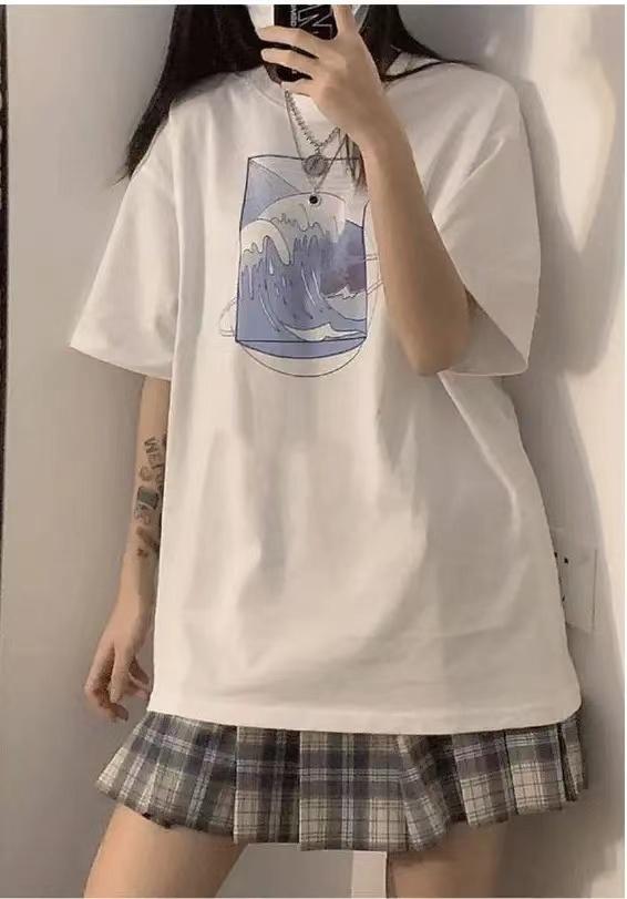 But this kind of slim-fitting T-shirt is more friendly to girls with good figures.Wear them evenly Only then will it look good. Pairing the lower body with a skirt or shorts can create a perfect waistline and reveal your good figure at a glance.