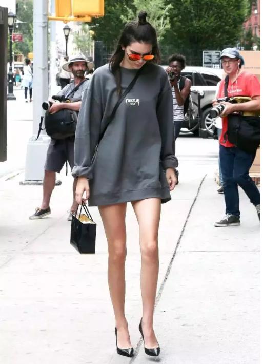 The mid-length gray sweatshirt is fashionable yet simple and elegant. It looks fashionable yet casual when you look at it. Outstanding. Its loose fit is also very good at storing the body shape. The addition of shorts is hidden under the hem of the clothes, making it look neat and elegant, and it also lengthens the slender legs. With the help of a pair of black high heels, the sexy style is well interpreted, making you feel very beautiful and feminine.