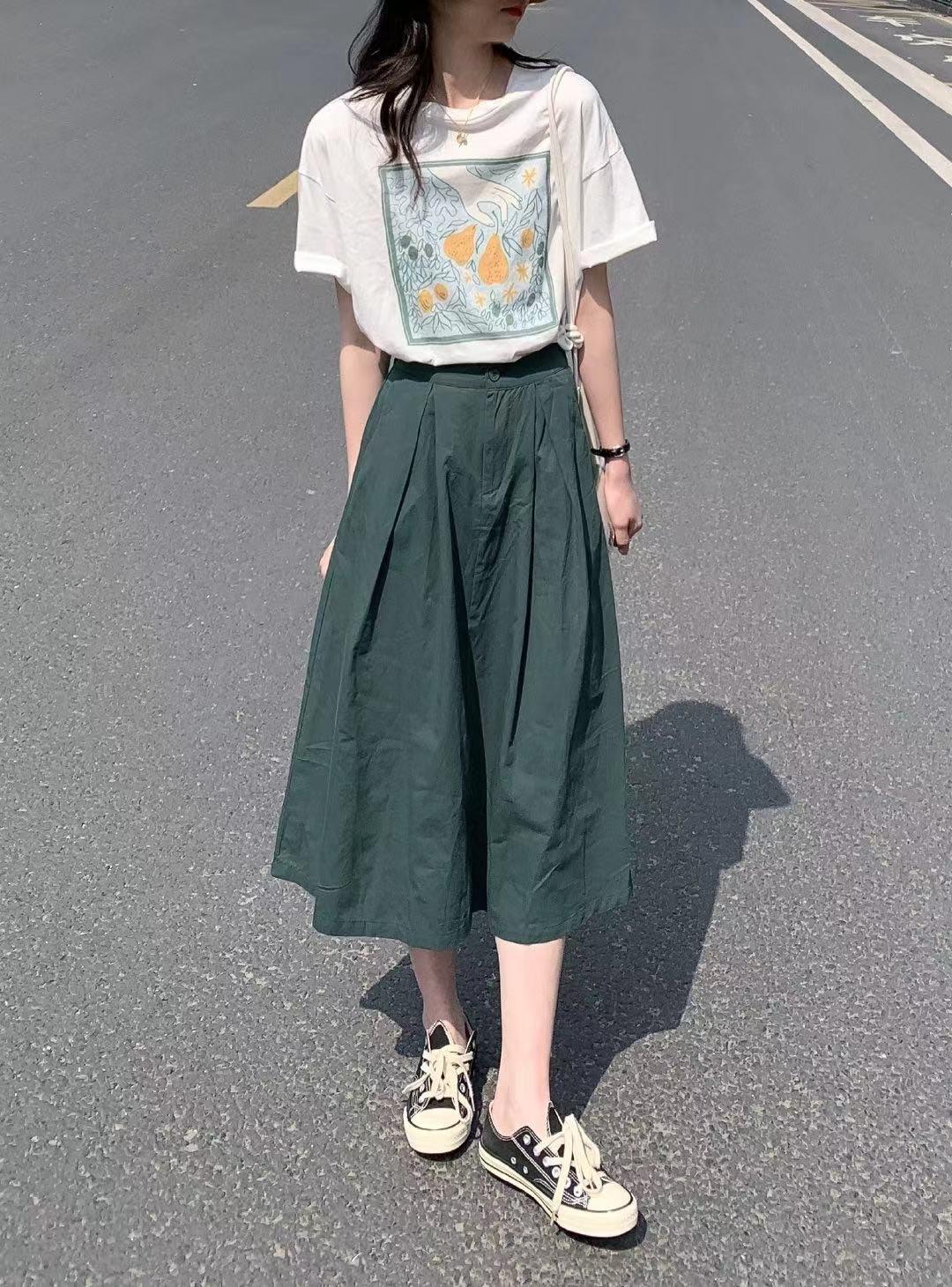 It is still difficult to change the style of T-shirts alone. In contrast, skirts It plays a big role here, almost dominating the overall style, so when choosing, sisters should choose according to the mood and style they want to express.