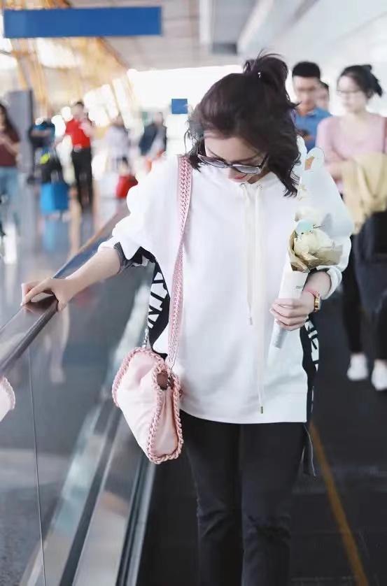 The lower body is paired with a pair of looser pants, but not exaggerated at all. It forms a contrast between light and dark, which is both slim and fashionable. The pure white sweatshirt is embellished with black letters, which is very elegant and gives the white a certain breakthrough.