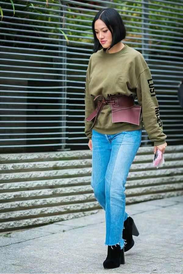 SoMature women must not step on the trap, try not to wear sweatshirts with leggings, You can choose suit trousers, jeans, or a skirt. This combination will make you more capable, elegant and sophisticated.