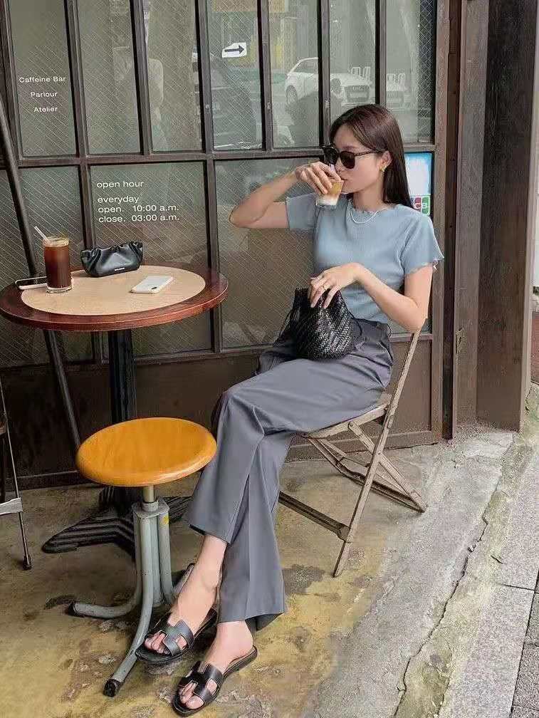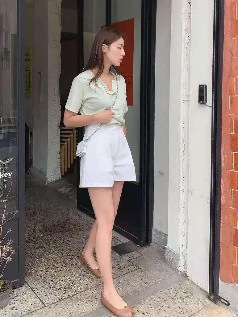 However, in order to appear taller, many petite girls will pair cropped pants with height-increasing shoes. In fact, this approach is superfluous. Heightening shoes does not make you look taller, and it also reduces the slimming effect of cropped pants. So, pairing cropped trousers with flat heels is the best way to look taller.