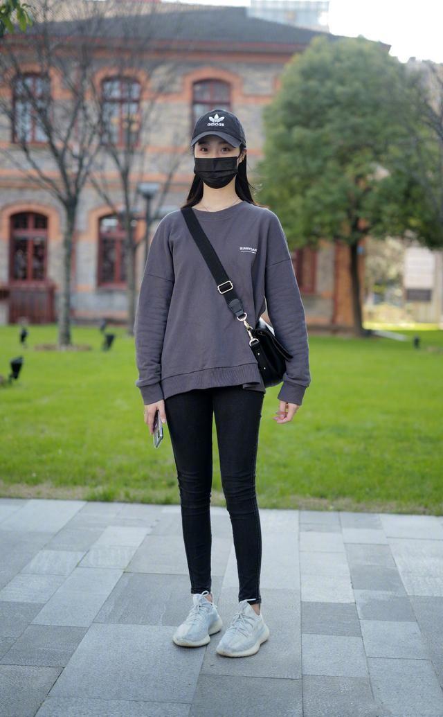 所以建议女性在穿卫衣的时候,宁可穿宽松的,也不要穿紧身的,推荐女性选择oversize版型的卫衣,比自己本身穿的衣服大一号就可以了。大得太多,就会显得整个人没有身材曲线,遮肉的目的达到了,却没有任何时髦感。