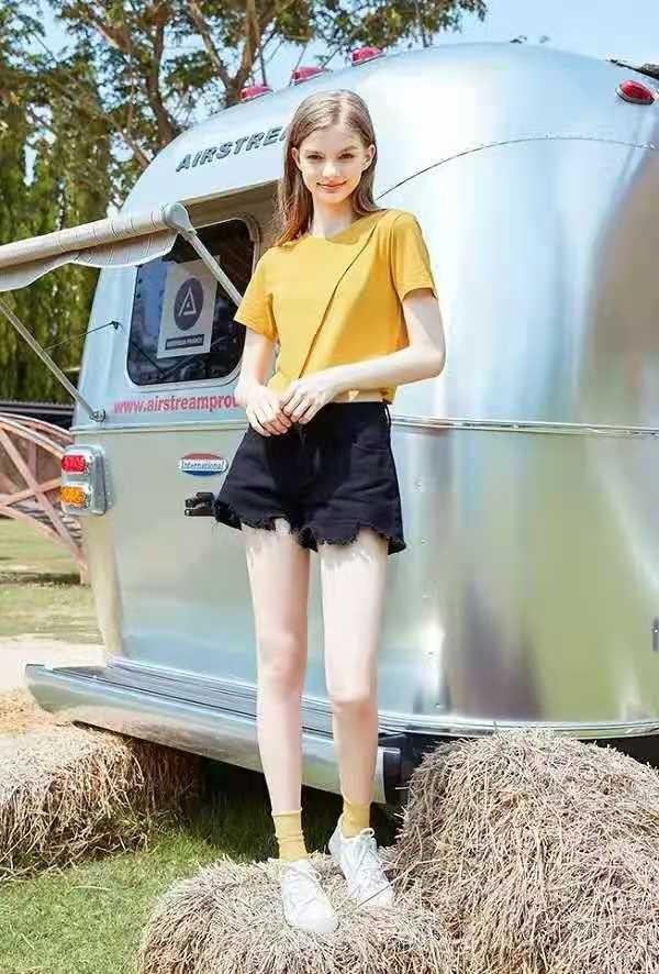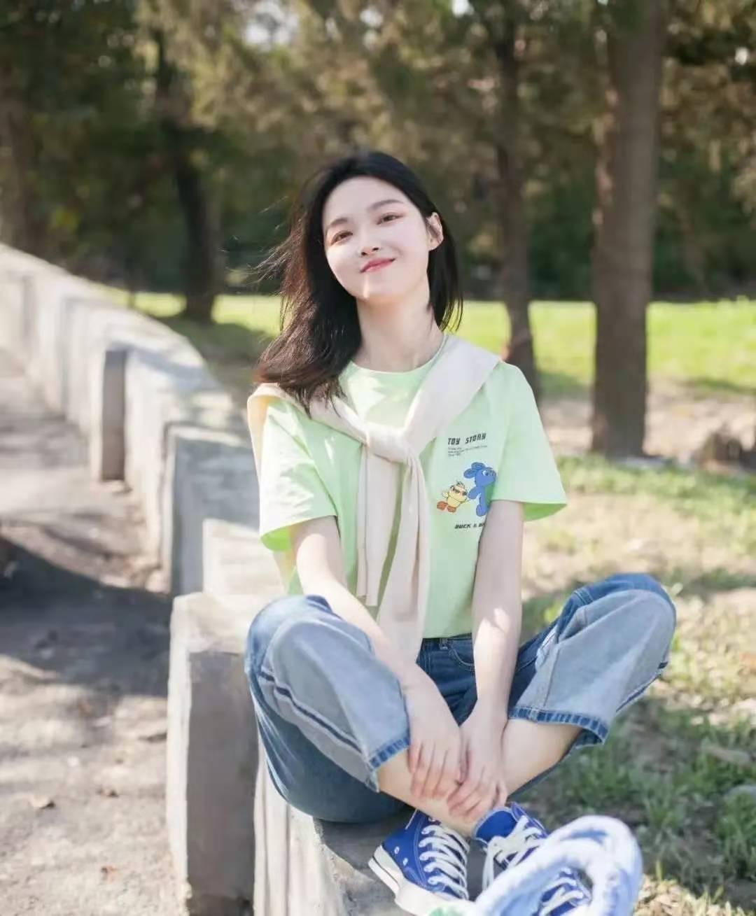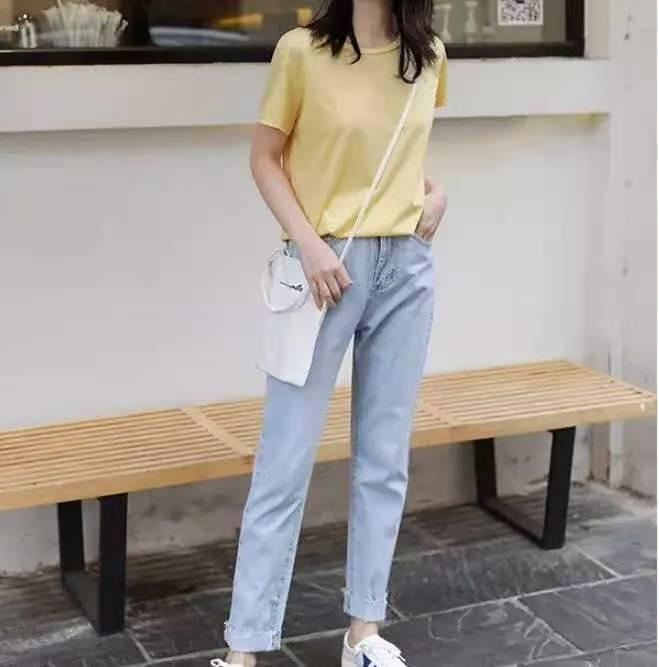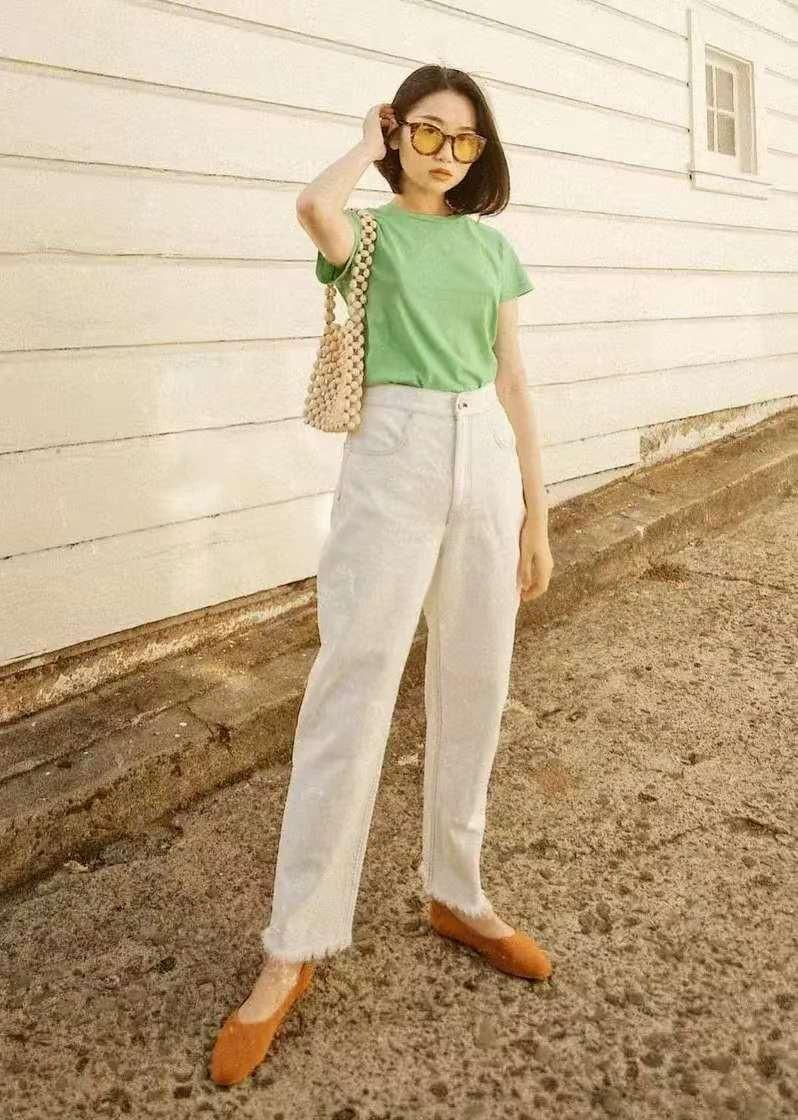 Under the cream yellow T-shirt, the whole person is gentle and pleasant, with the style of a proper lady. However, the tenderening effect of creamy yellow is far superior to other colors, and it is more girlish than pink. Therefore, in terms of age, cream yellow is somewhat restricted and is suitable for girls in their early twenties. If worn by women over 30, it is easy to look “pretend to be young” and look good.