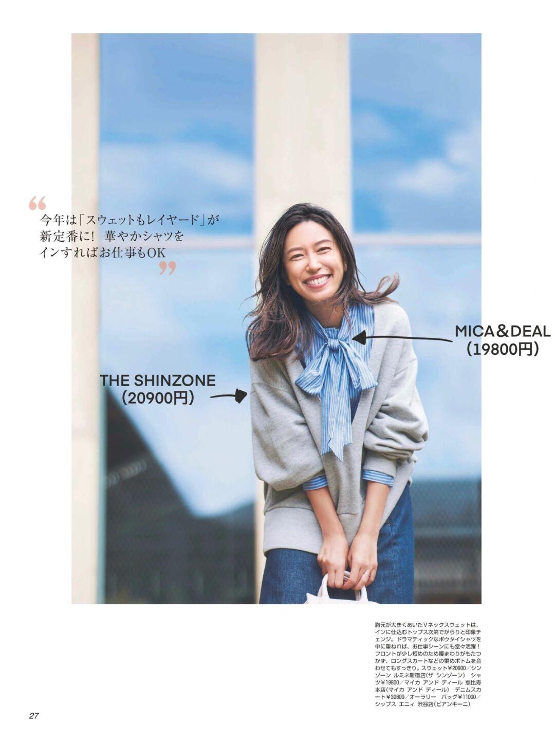 The sweatshirt itself has a very casual feel, coupled with the casualness of wearing it alone, so the overall look is more capable and easy-going. The comfortable and shapeable sweatshirt can be matched with many bottoms, including skirts and trousers.