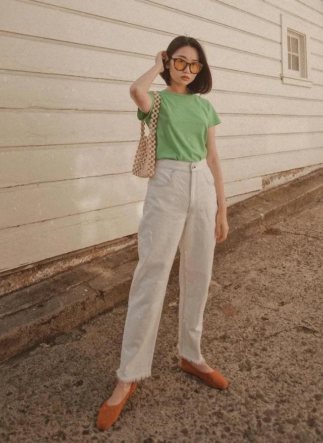 The easiest way to get started is the candy-colored T-shirt without any printing, just one color. This type will be more simple, and can save a lot of styles in the matching process, and most candy-colored and solid-color T-shirts are mainly in a fresh style, and the color series are more elegant than simple black and white ones. It is durable and elegant, and can be matched with a variety of styles.
