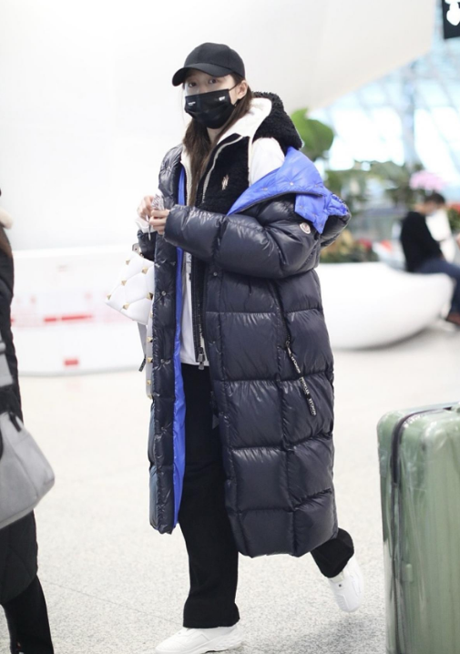 Guan Xiaotong is a tall girl, so when choosing a coat, you can wear this long style, which not only protects the entire body, but also has good warmth retention properties. However, if ordinary girls are not tall, it is recommended to choose a mid-length down jacket and pair it with leggings, which will look better without weighing down your height.