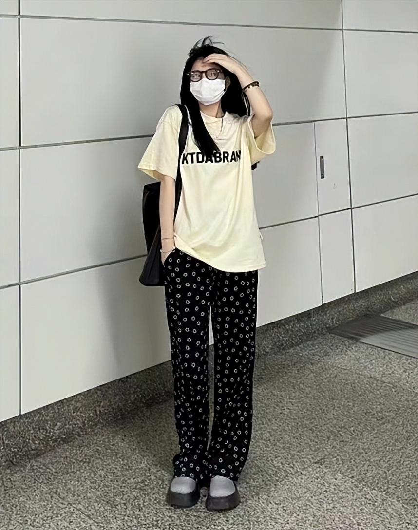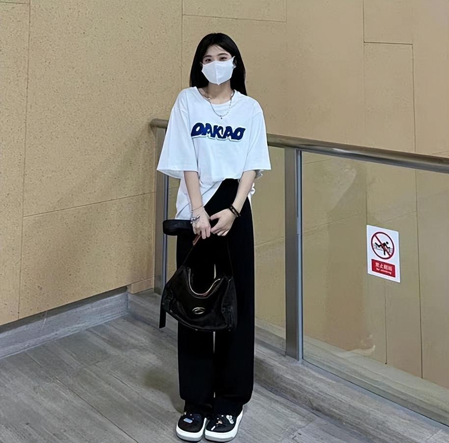 For small girls, height restrictions require them to pay special attention to the shape of their waistline when wearing loose items. For a long T-shirt + trousers combination like this, when there is no skin-revealing design, the shaping of the high waistline must be indispensable, so the tuck-in corner method comes in handy.