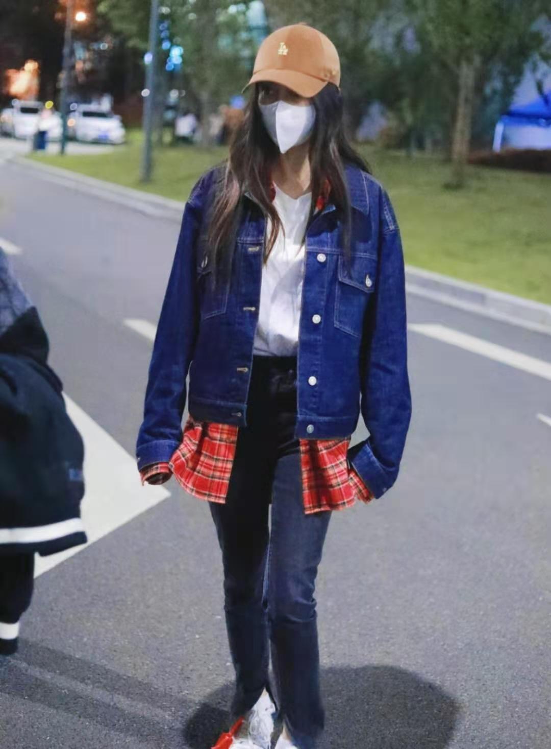So, when wearing a denim jacket, you should not just think about reducing your age, but also consider your sense of fashion. As for how to balance the age-reducing effect and fashion sense of a denim jacket, we can learn from Angelababy Yang Ying. Wearing two pieces of clothing inside a denim jacket not only adds a sense of fashion, but also has a sense of hierarchy.