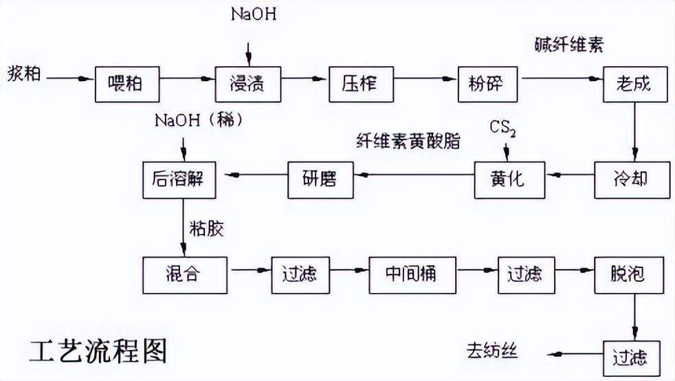 The plant cellulose is alkalized to form alkali cellulose, and then reacts with carbon disulfide to form cellulose xanthate, which is dissolved in dilute alkali solution to obtain a viscous The solution is called viscose, and the viscose becomes viscose fiber after wet spinning and a series of processing procedures.