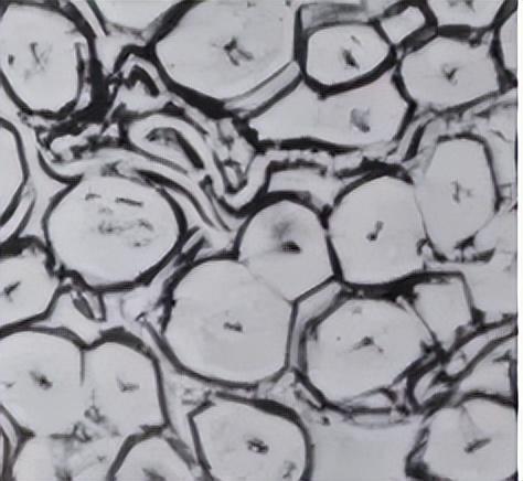 Marijuana: The middle cavity is larger, Oval in shape, accounting for about 1/2-1/3 of the cross-sectional area;