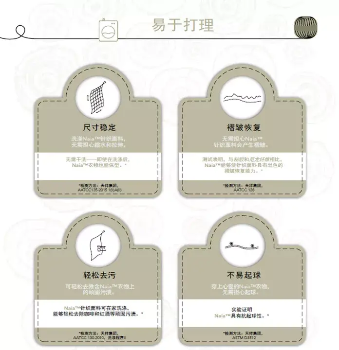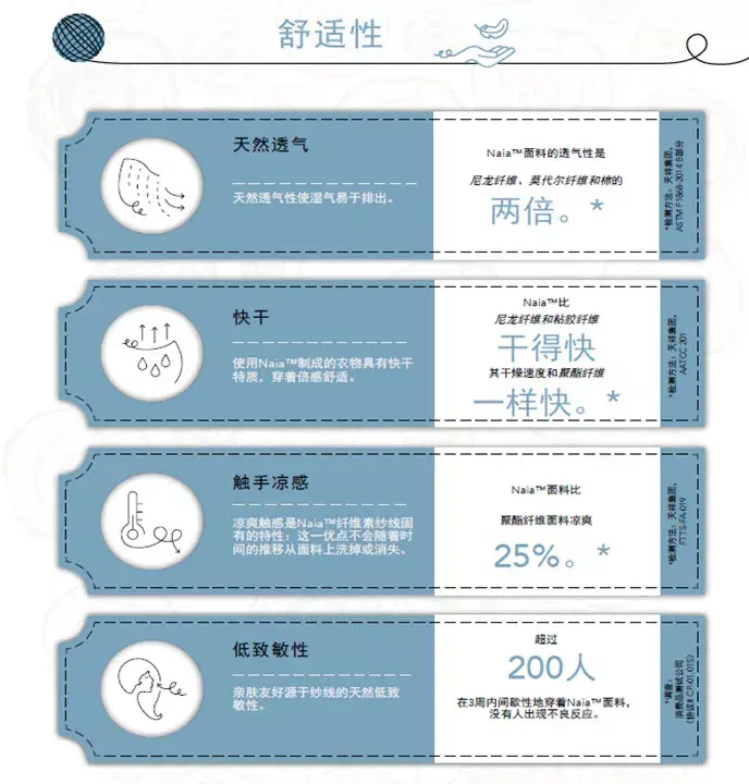 In order to make every performance of Naia™ fiber well-founded, Eastman has conducted relevant tests on Naia™’s glossiness, hypoallergenicity, quick-drying, breathability, anti-wrinkle, easy stain removal and other functions, as follows: It is an introduction to the performance of Naia™ in terms of luster, skin-friendly and easy care.