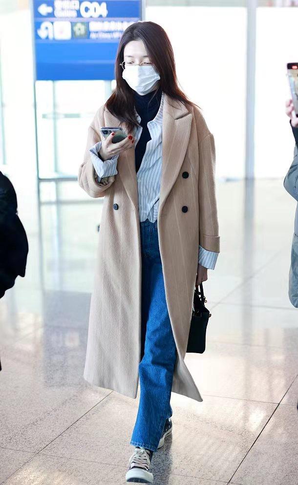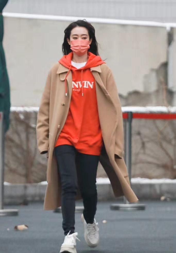 In addition to choosing some dark-colored sweatshirts to highlight a sense of stability, this eye-catching light-colored sweatshirt can also give people a sense of stability. The lively and light feeling is particularly suitable to wear in spring. The bright orange hooded sweatshirt worn by Zhang Xiaofei is paired with a camel woolen coat. It is high-end yet stable, highlighting the taste of reducing age.