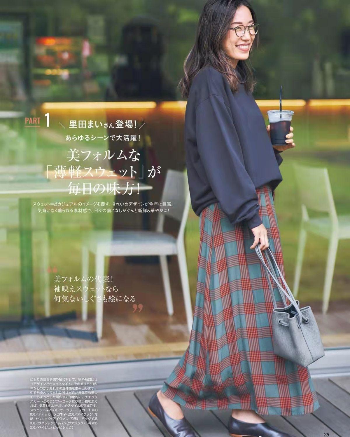 For women, it is particularly important to have a sense of maturity when dressing. The combination of dark colors will give people a sense of stability and temperament. A black and gray loose sweater paired with a plaid pattern The knee-length skirt is elegant yet stable. Pair it with shiny leather shoes to highlight your personality.