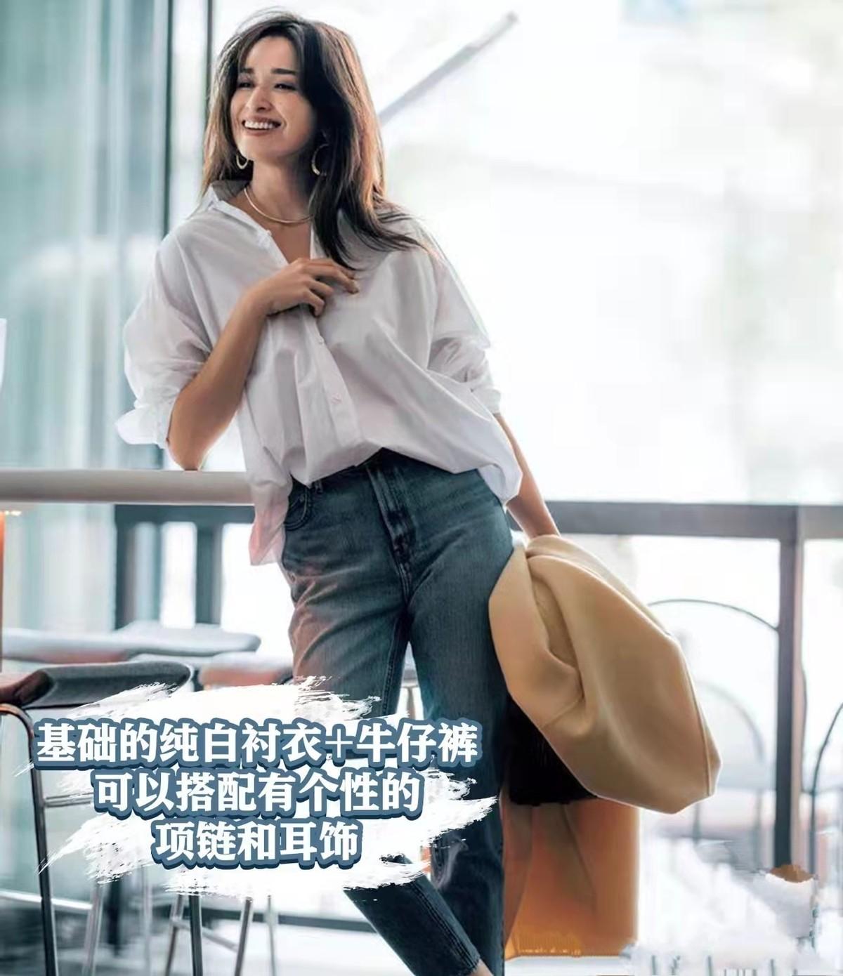 If you want to wear an ordinary white shirt with a high-end sense of femininity, you can match it with some metal necklaces and earrings. Adding a sense of sophistication, in addition, slightly unbuttoning a few buttons on the neckline reveals the charming collarbone and neck line to highlight the feminine charm.