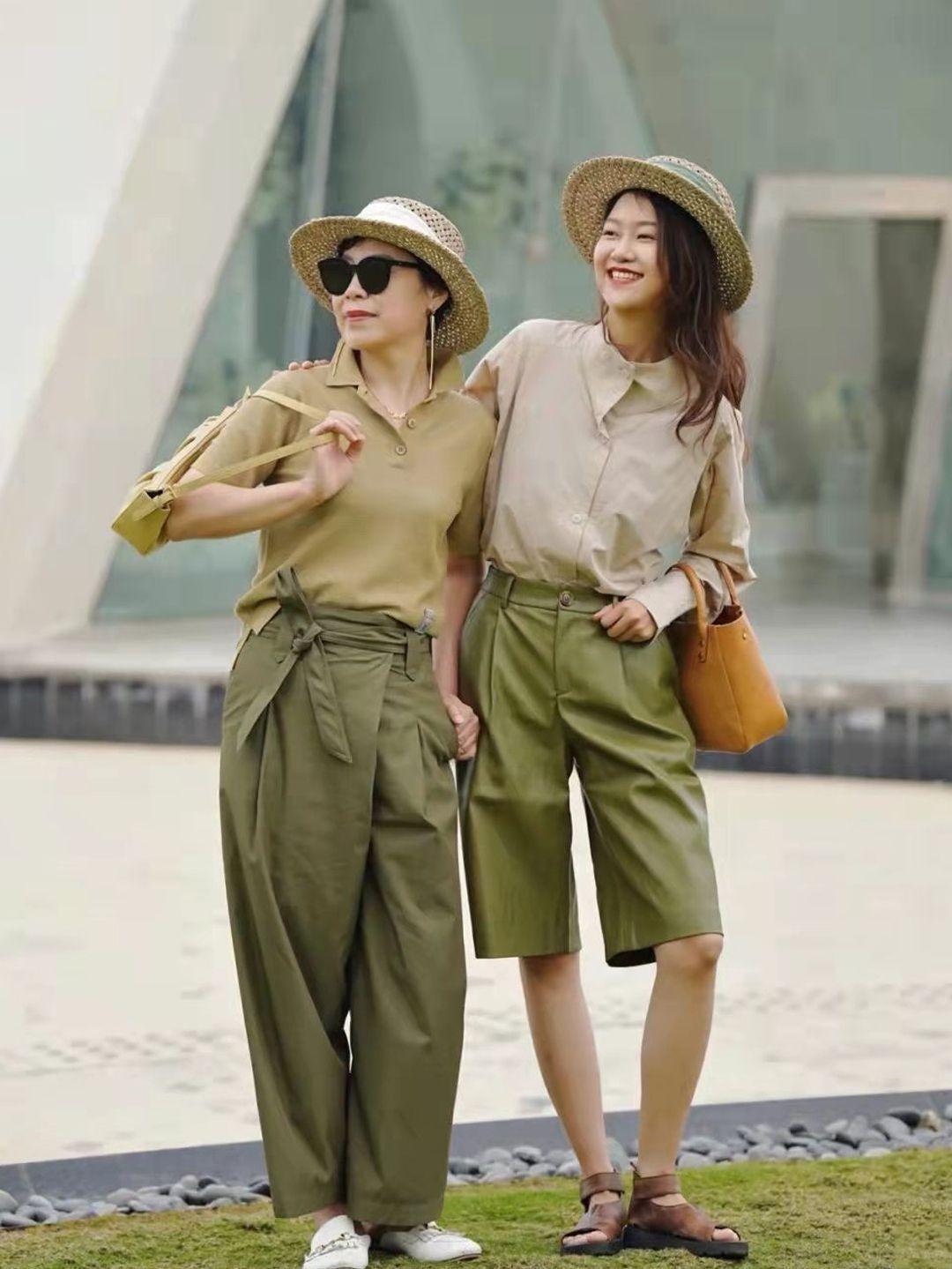 Take a long acetate shirt as an example, layer a T-shirt with wide-leg pants, and then wear a scarf and a hat to embellish the look. The overall look is simple and advanced. , very suitable for older women.