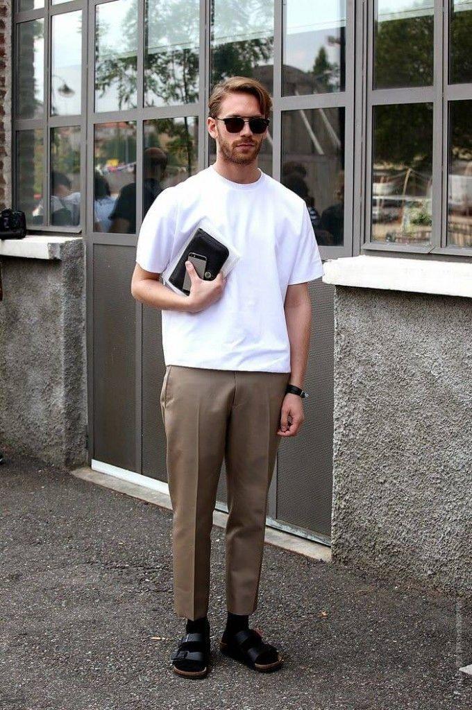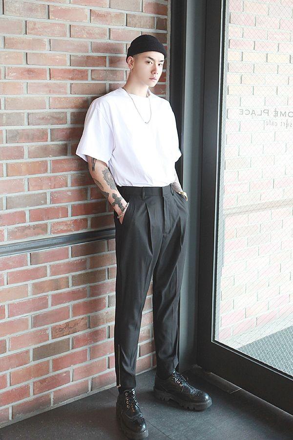If you only have a fat upper body, you can use a loose T-shirt with tapered trousers to modify your figure. The trousers fit the calf curve to make your body look slimmer. The overall temperament is more neat, and it also balances the expansion of the loose version.