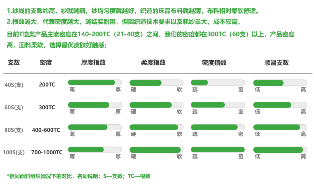 The same is true in the clothing industry, close-fitting wear Textiles that are in direct contact with the skin, such as T-shirts, underwear, shirts, and bedding, will be marked with their fabric count.