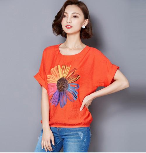Print bat sleeve cultural shirt