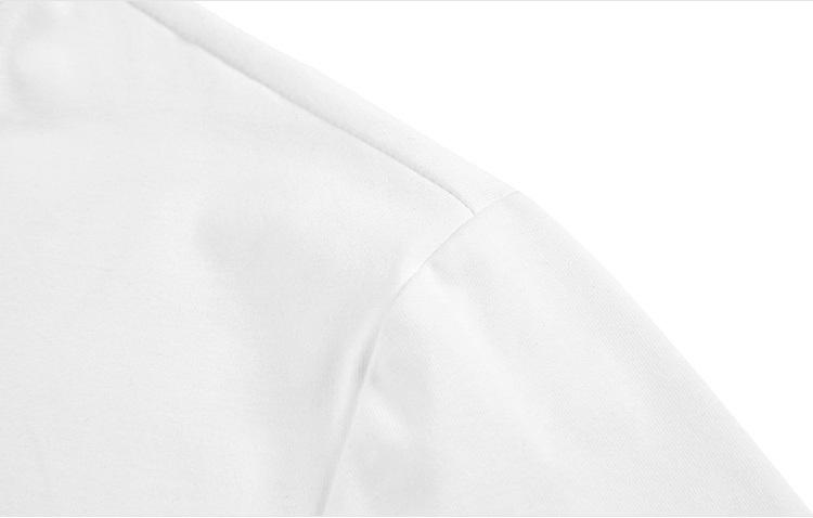 A major problem with wearing T-shirts is that the thin and see-through fabric can easily cause bulges or exposed spots, especially white T-shirts, which look embarrassing and impolite. If you want to wear them alone If you don’t want to look too much like underwear, choose a 290-390-pound cotton T-shirt. It won’t be too hot to wear alone because the fabric is thicker, visually straighter, and has a high degree of decoration.
