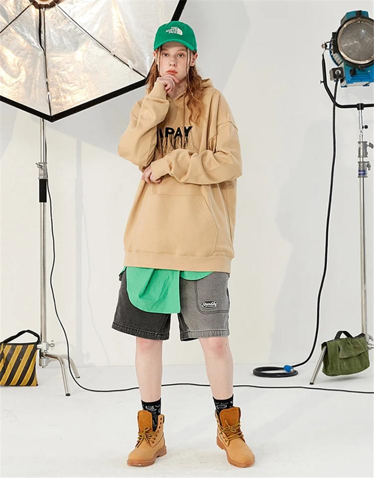 “Universal Black” sweatshirt with personalized print on the chest and letters on the back, paired with camel overalls and casual pants of the same color Wear canvas shoes and sunglasses to boldly release your own charm.