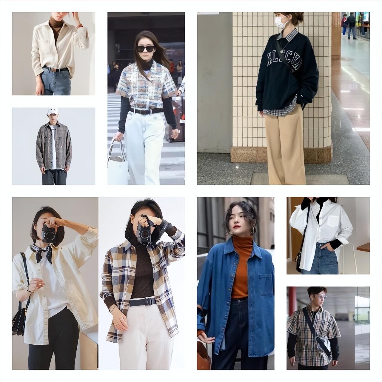 Long-sleeved T-shirts are layered with shirts. Different layering methods create different styles.