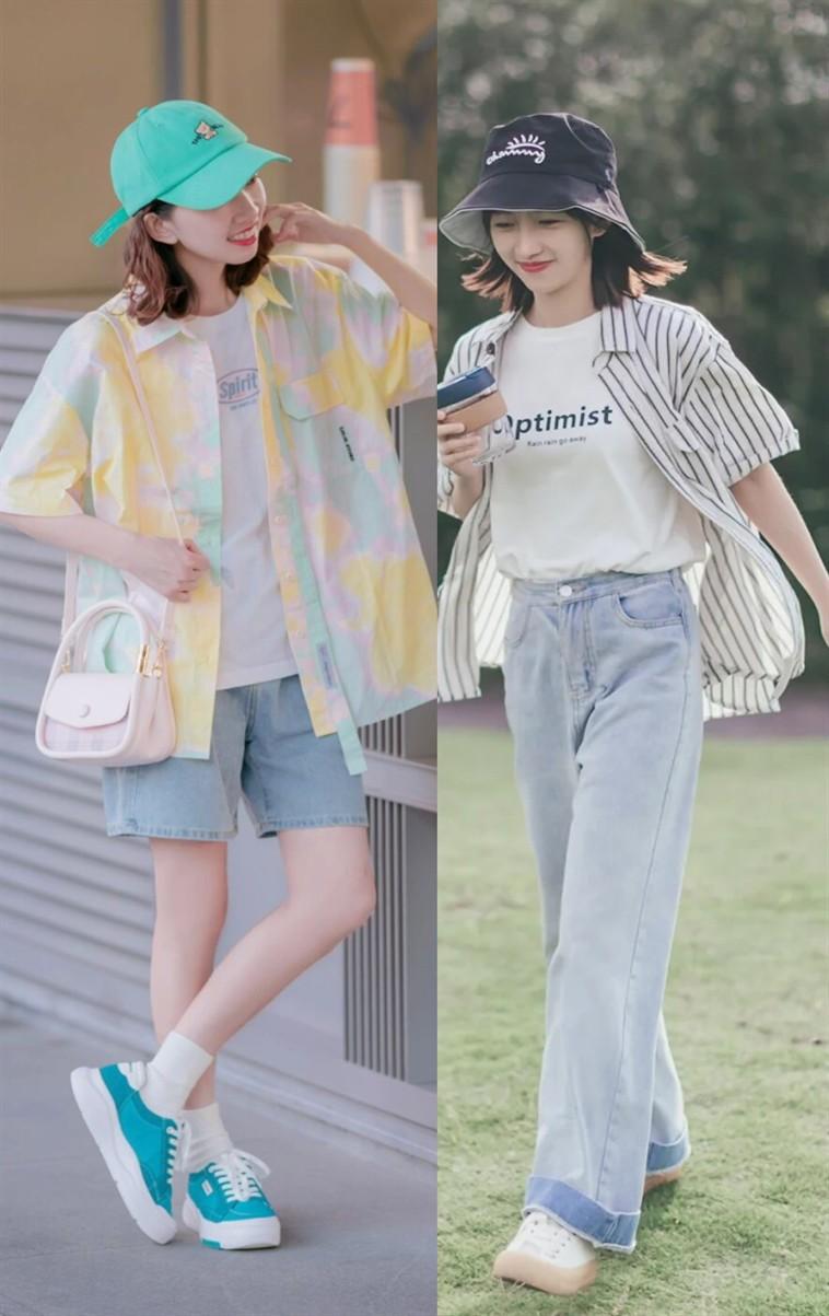 But the premise is that we must follow the dressing principle of “tight inside and wide outside” and wear a slim T-shirt with a loose-fitting short-sleeved shirt, otherwise, It is easy to cause a bloated feeling to the upper body.