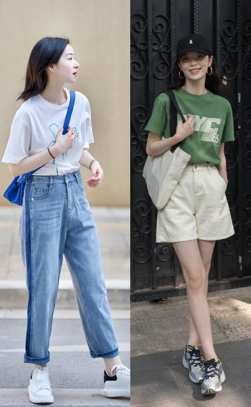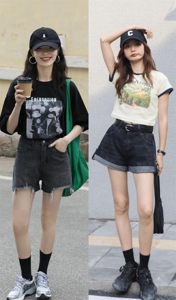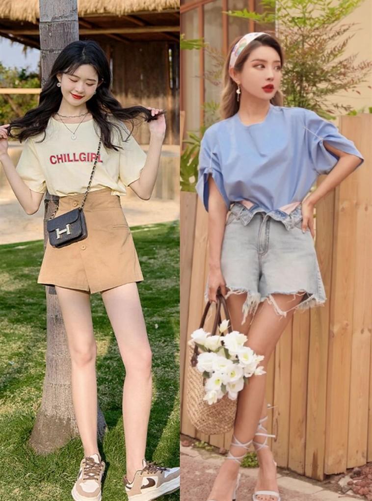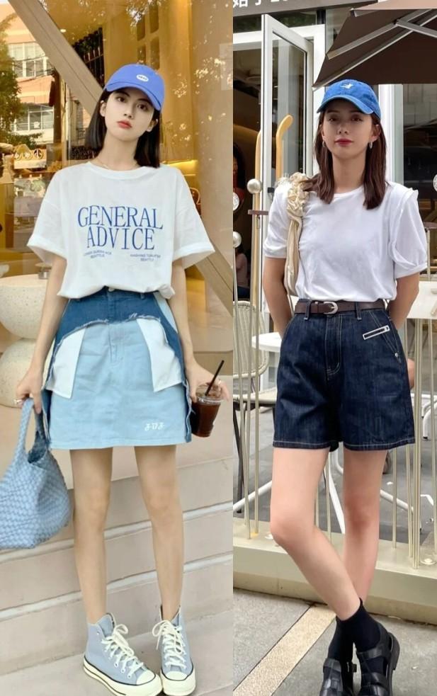 “Keep the overall style consistent” is a matching method that is not easy to go wrong. If you have a good sense of fashion and want to wear a T-shirt with a unique feeling, it is recommended to match it with design bottoms, similar to Ripped denim shorts, rolled shorts, irregular skirts, etc.