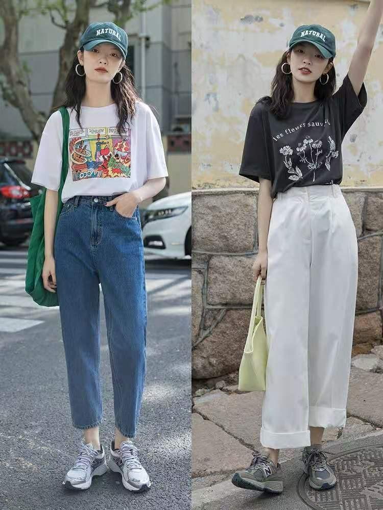 Most of the T-shirts in our impression are loose and baggy. Affected by this, they are usually paired with loose pants such as Bermuda shorts, casual pants, wide-leg pants, and sports pants. The purpose is to use the looseness of the upper and lower garments to create a Casual and comfortable style.
