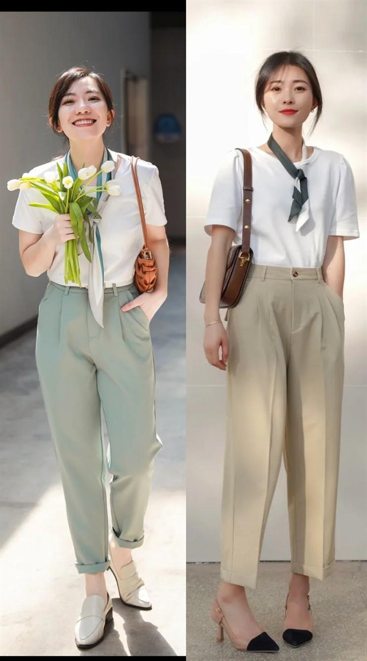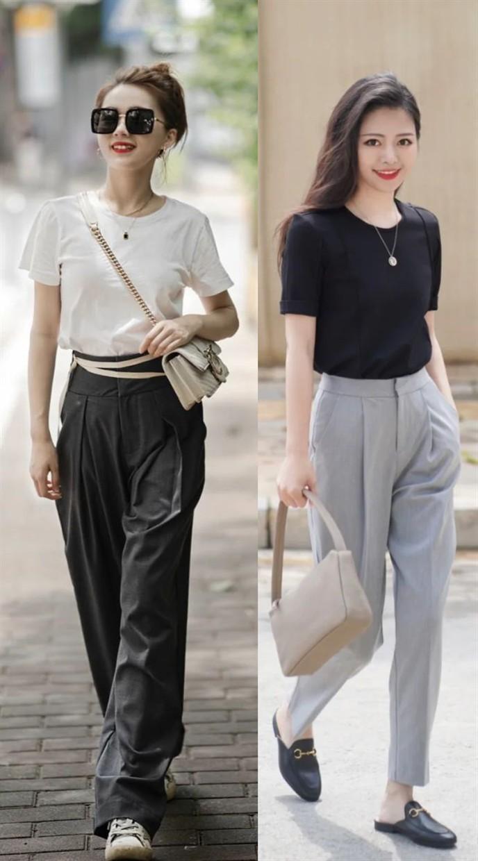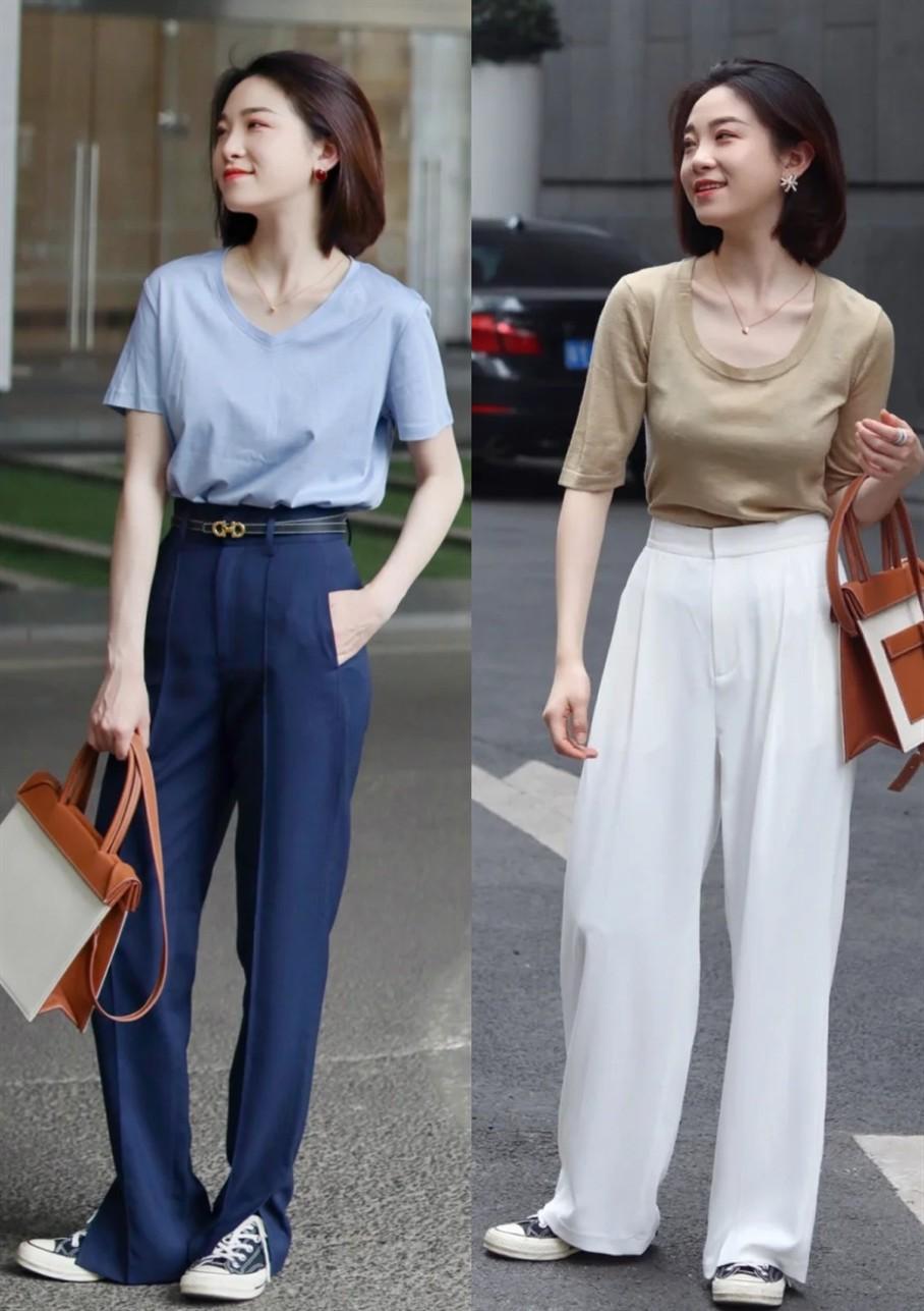 The matching idea of ”T-shirt + suit pants” is suitable for working women. The casual sense of the T-shirt and the formal sense of suit pants collide to create a It is a casual and formal dressing style that can be worn in daily occasions without losing the sense of leisure; worn in workplace occasions without losing the sense of workplace atmosphere. This kind of dressing effect is undoubtedly what working women want most.