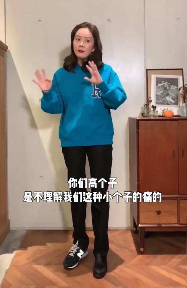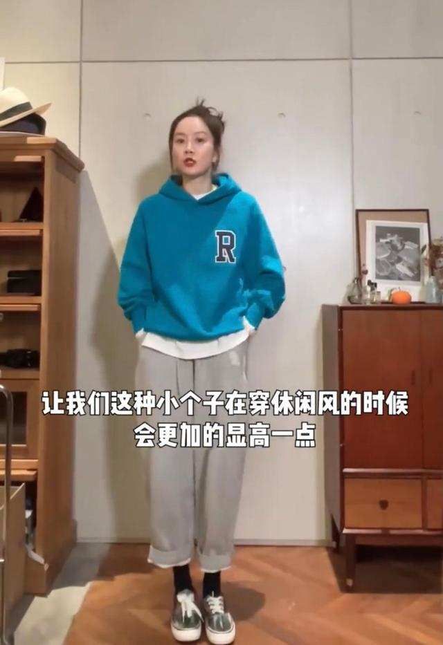 Although the tight black pants make the legs look slimmer, they have no obvious leg lines. The entire lower body is ‘loose’, and the sweatshirt The loose version makes the upper body ‘bloated’, plus dark blue and black. The “thick” color scheme not only fails to highlight the casual feel of the sweater, but instead looks full of “earthy aunty” feeling.