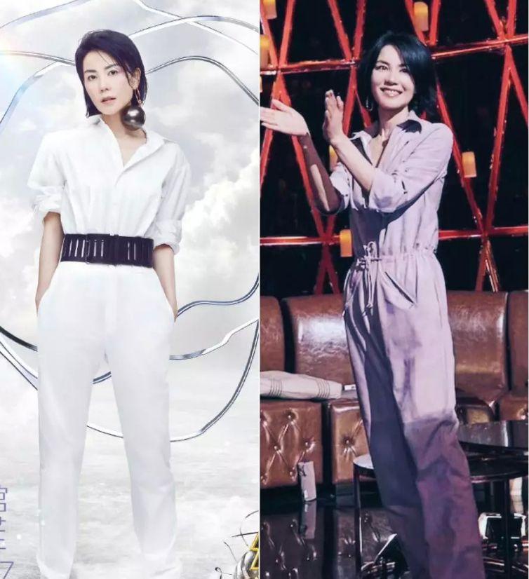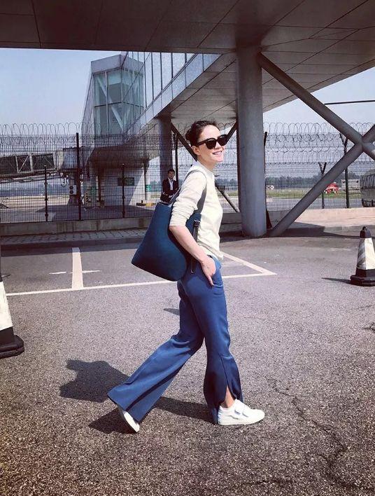 Faye Wong herself has a relatively casual and free-spirited personality, and she also wears a casual and elegant style. In the photo taken with my girlfriends, I was wearing a pair of white T + coffee trousers. The overall color matching is simple and high-end, but the details are still very fashionable. The white T chooses the deep V + wide shoulder design that is very popular offline, which is sexy and very slim. age. The biggest highlight of the pants is the slit design on the trouser legs, this design appears on pants In fact, it is not common. It usually appears on skirts. It has a unique beauty when paired with skin-friendly trousers.