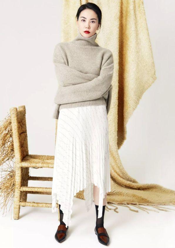 Add irregular tailoring designs to clothing,It will make people look very stylish, and irregular cuts usually expose skin to make the outfit look more breathable and not dull. Like this look, the top I chose is an all-inclusive sweater with a high collar. The lengthened version can easily make people feel “breathless”, but the irregular hem of the skirt makes the whole look light and casual, and the overall look is solemn and free. Cool.