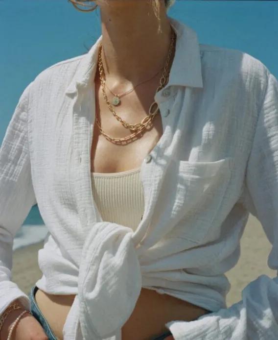 As a versatile item, It is best to choose a solid color linen shirt. The natural and simple feeling not only highlights the texture of the fabric, but the solid color is also very high-end.