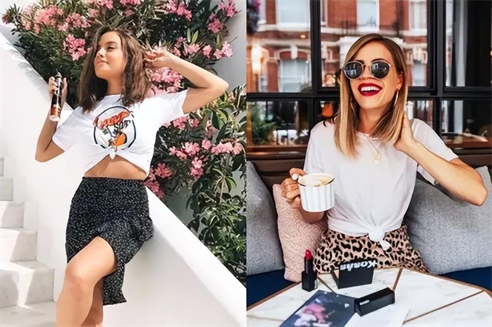 The shape is also very loose, and not many people are suitable to wear it directly. It will make you feel like you are wearing pajamas. Manually cinch the waist of a T-shirt, which not only looks simple and capable, but also highlights the curves, making it look much better.