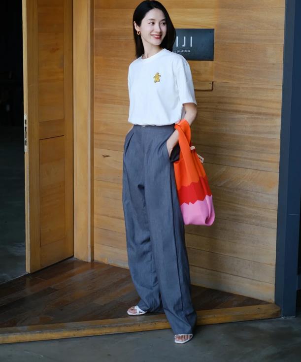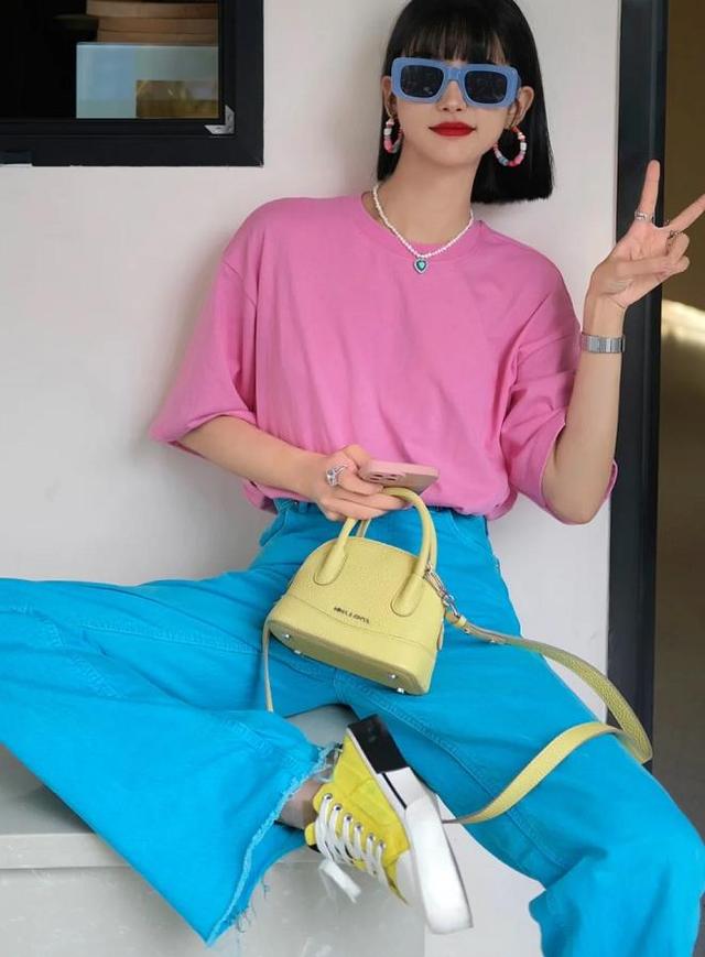 In the summer wardrobe Here, how can I be short of a few T-shirts? Such a versatile and timeless item, I believe it will be popular among any age group, right? How can you wear a simple T-shirt to look fashionable and age-reducing? The simplest and most direct way is to choose bright colors to wear based on your actual skin color.