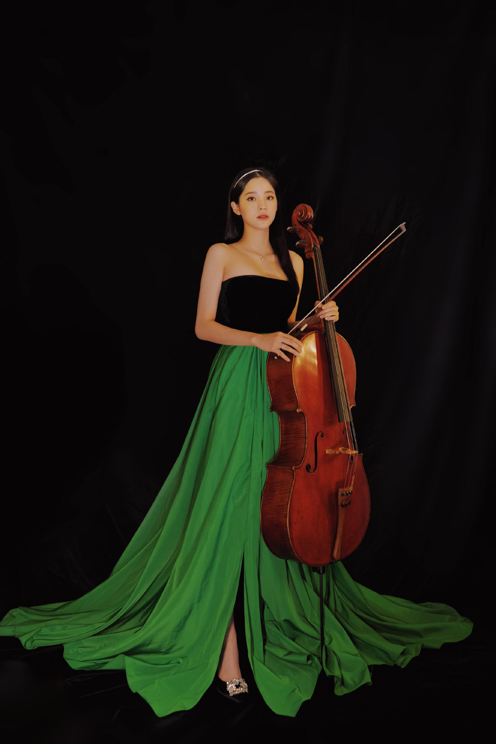 Cello playing emphasizes elegance and dignity, and the tube top interprets this feature. The female star’s superior clavicle lines and shoulder and neck lines all complement her overall temperament. What is very different from this is the green floor-length skirt, which makes Ouyang Nana more mature. The texture of silk echoes the elegance of the cello. The sense of high-end is self-evident and makes people envious.