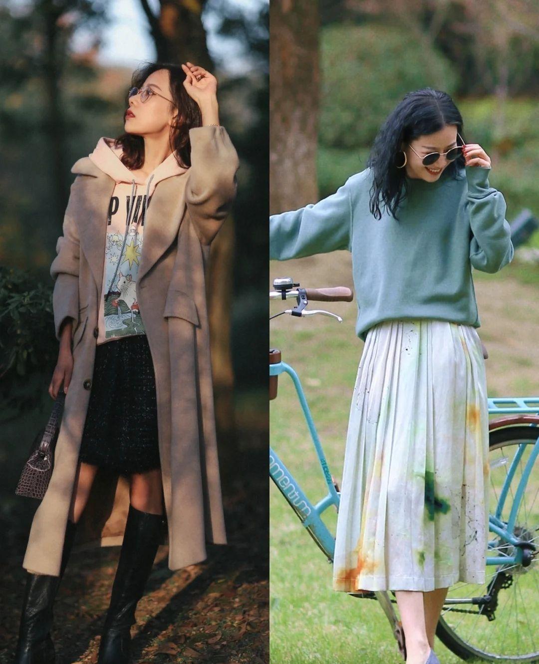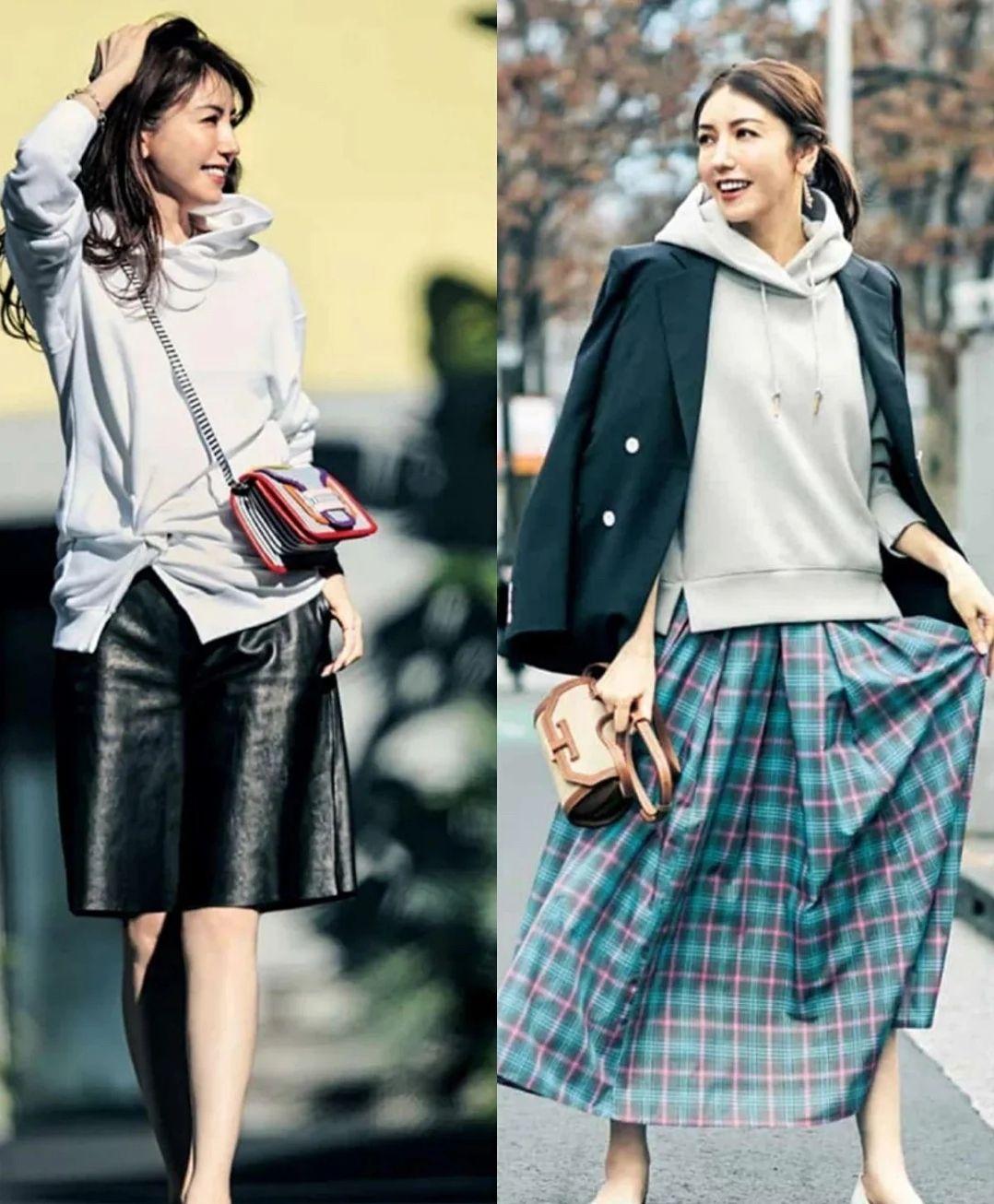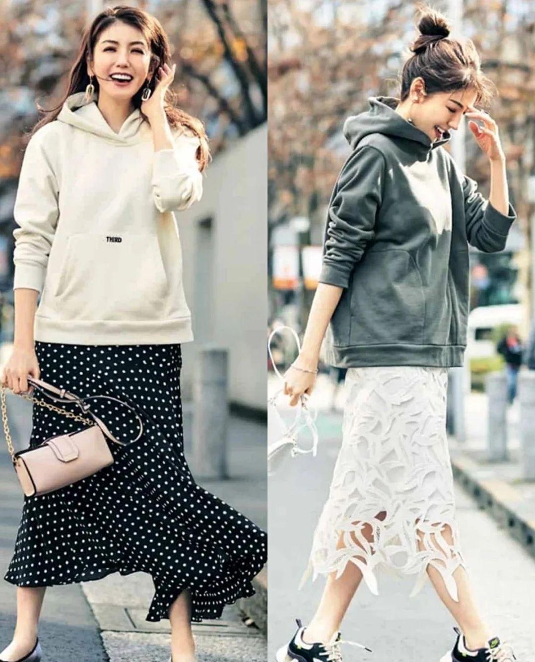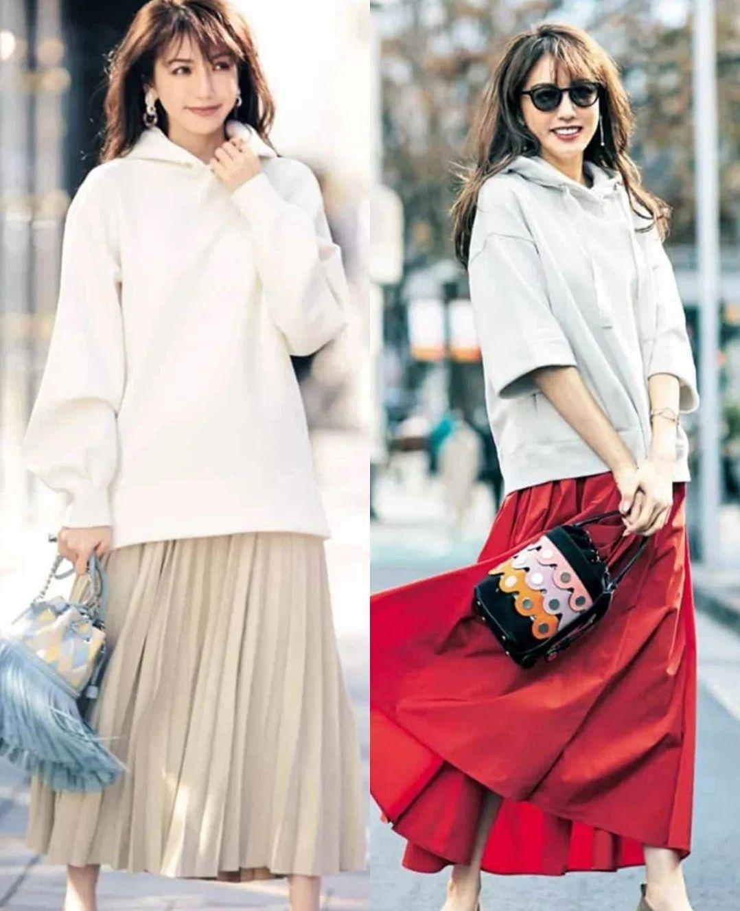 However, when pairing a sweatshirt with a skirt, you should pay attention to combining it with your height and figure. Generally speaking, this kind of loose-fitting matching will be very difficult for your height. If you are not tall enough, it is easy to wear it. A feeling of being unable to hold on.