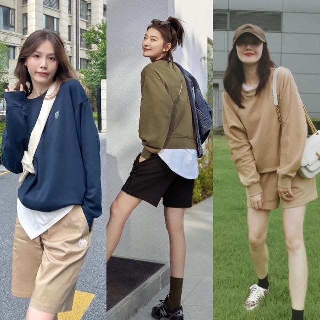 Although it is autumn, the sun is still shining brightly in the south. When wearing a sweatshirt, you can pair it with shorts to show a refreshing feeling and show off your beautiful legs. However, this matching method usually has higher requirements for leg shape. If the leg shape is not slender and well-proportioned, it is easy to expose the small body parts. shortcoming.