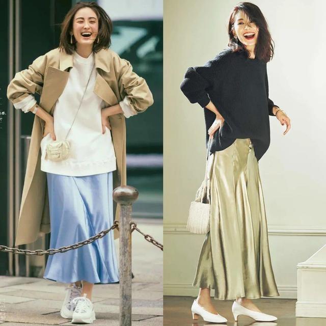 If you want to wear a casual sweater with a high-end texture, you can try to match a low-key sweater with a satin skirt with a higher texture. The satin skirt has a kind of luster. Feeling, wearing it on the body can present a visual brightness, and it can also enhance femininity.