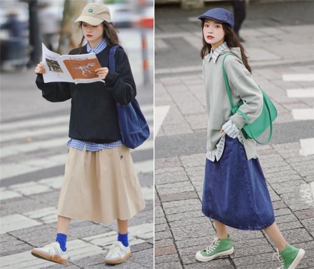 You can try it in areas that are not very cold Pair a comfortable sweatshirt with a skirt. Compared with the combination of trousers and a coat, the combination of a skirt and a sweater feels more gentle, delicate, compact and full of vitality.