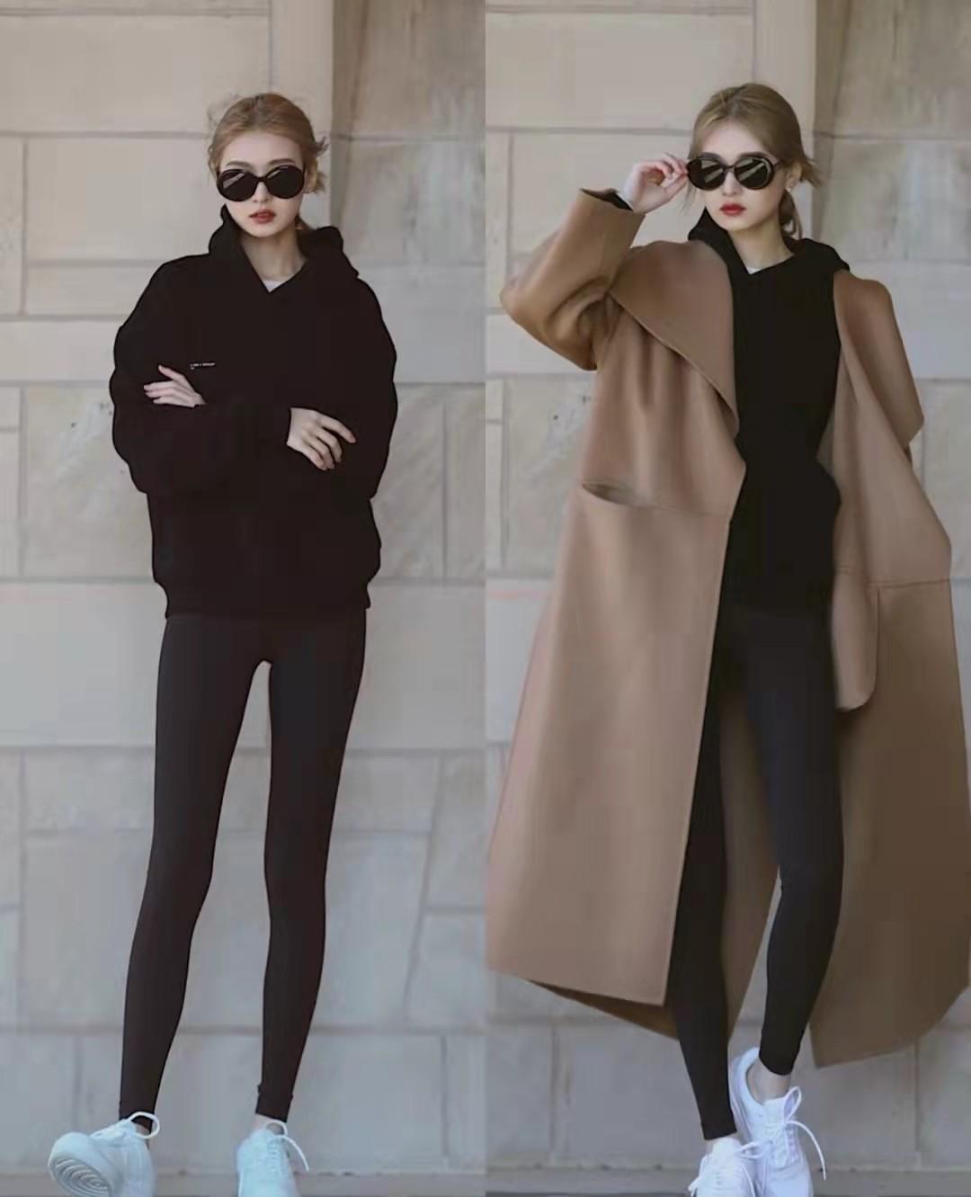 If you want to wear a sporty girl feel, then sweatshirts Pairing it with slim-fitting leggings is a very practical choice. Pair a loose sweater with slim-fitting leggings. Use upper and lower body styles to create a visual contrast. In contrast, In this state, the leg shape appears to be more superior.