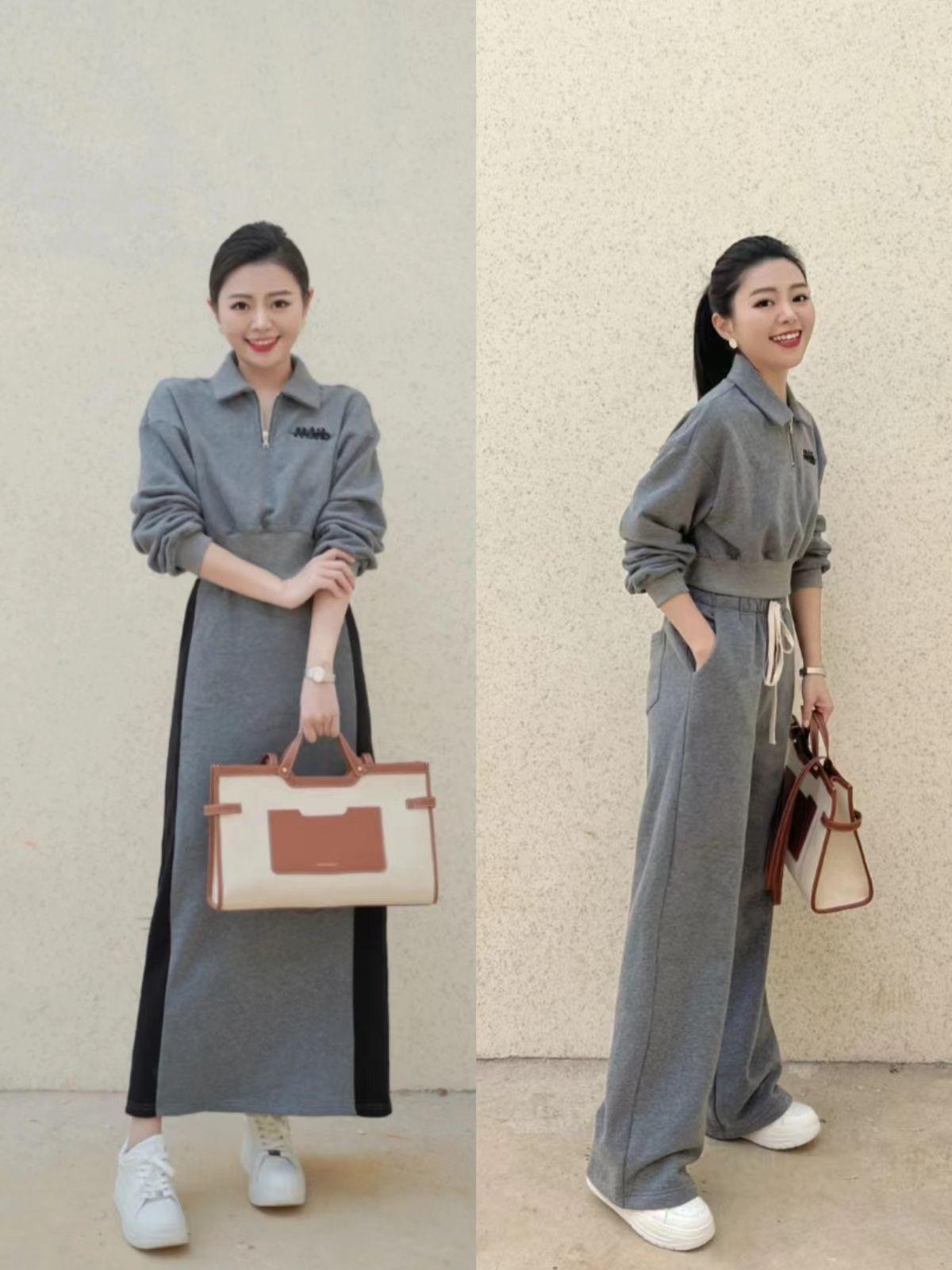 We can make the look more handsome by choosing a lapel style, paired with a long skirt and casual sweatpants, which is comfortable and effortless, fashionable and makes the legs look longer.